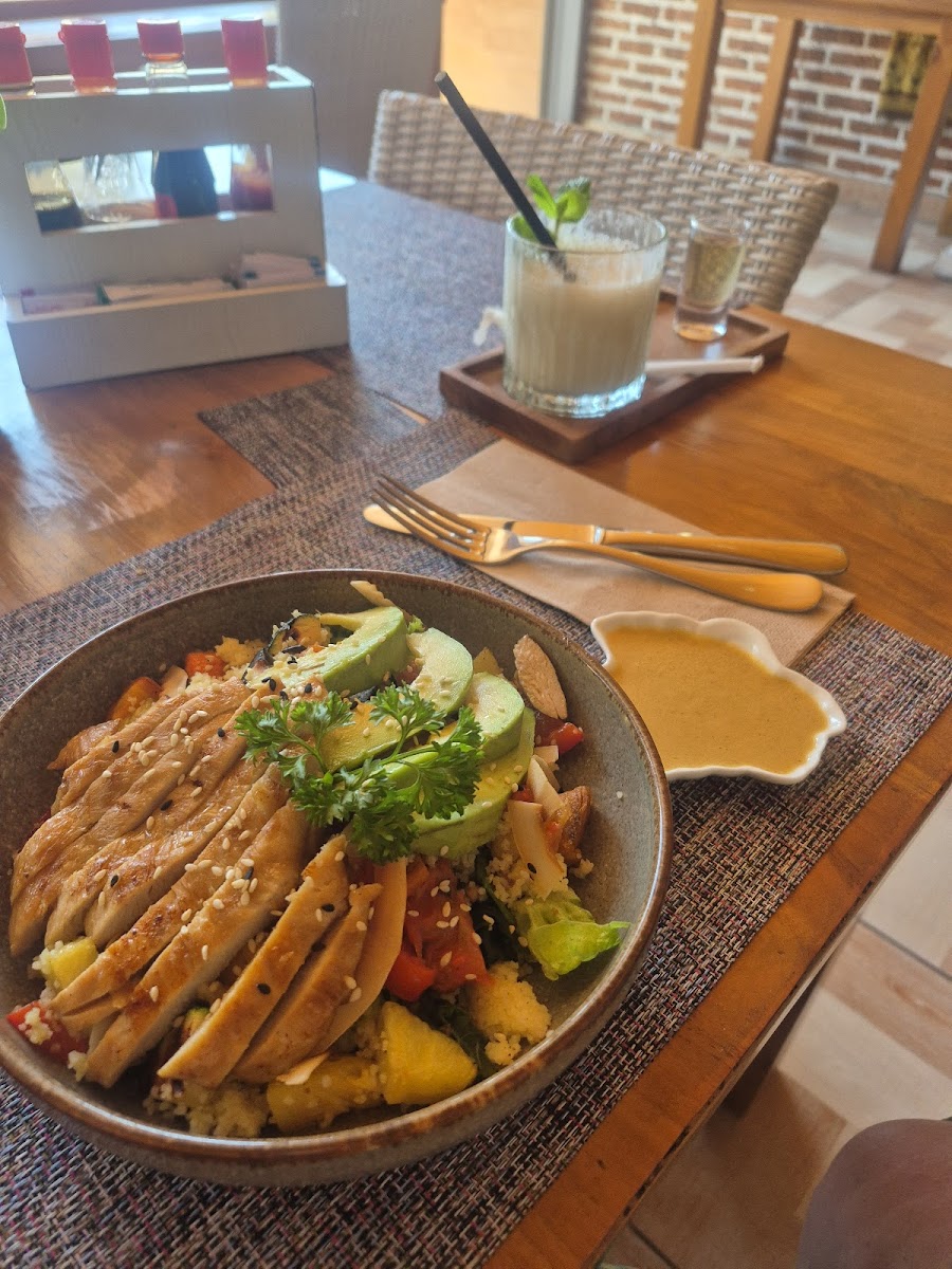 Food here veers away from the usual heavy rice or noodle dishes common in Bali, favoring fresh, healthy choices with interesting dressings that bring something different to the table. Options like avocado toast and a chicken couscous bowl stand out as modest yet tasty departures, making Chilla's perfect for those wanting a light but satisfying meal. Drinks are thoughtfully served too—banana juice with optional sweetener lets you adjust to your taste rather than handing you a one-size-fits-all beverage.